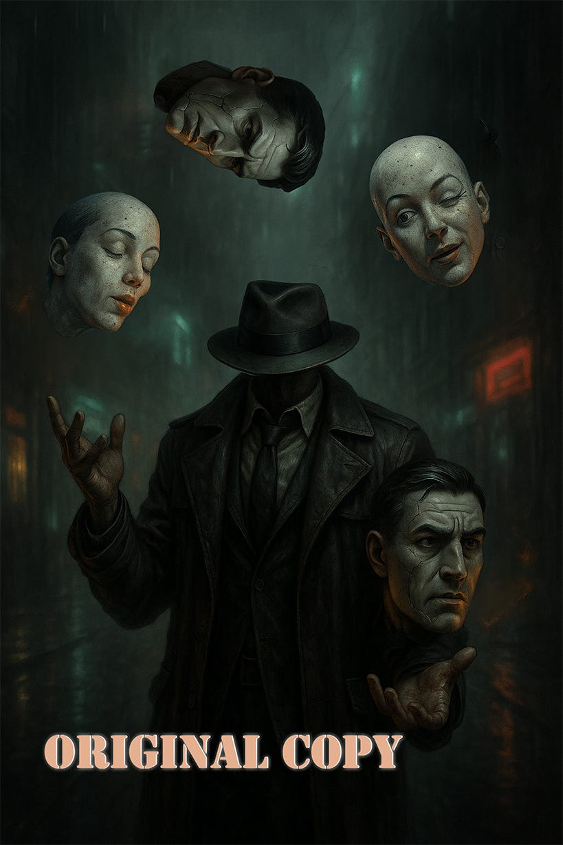 A pale lifeless face, untouched by time or fatigue, like it was sculpted. No scars. No wrinkles. Not even a nick from a shaving mishap. Just smooth, flawless skin, stretched too tight.